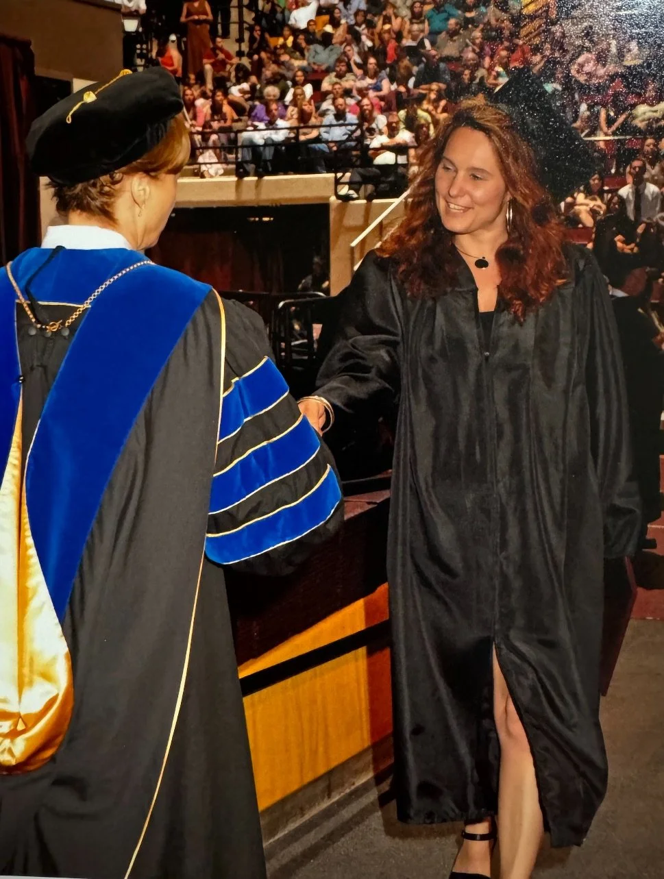 I raised my kids, first one, then three, mostly on my own. The hustle was constant. The weight was heavy. But so was the desire to understand what healing actually looked like. It wasn’t until my youngest started school that I finally returned to the classroom for myself. I earned my bachelor’s degree (criminal Justice) and then two master’s degrees (Psychological Research and Professional Counseling), every single one as a single working mom, doing homework at the kitchen table between laundry, dinner, baseball and karate.